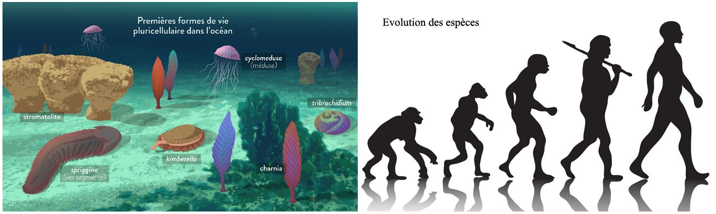 Wir müssen etwas mehr als 500 Millionen Jahre zurückgehen, um erste Anzeichen von Leben auf der Erde zu entdecken. Quallen und Fische bevölkerten die Meere. Anschließend besiedelten Flechten und Pflanzen die Kontinente.