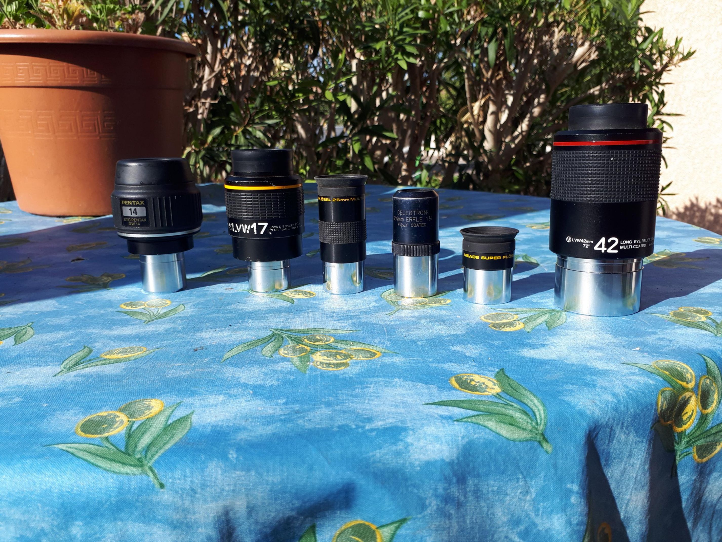 Ich nehme meine Okulare wieder mit. Beim 25-fach-Okular ergibt 2000-fach geteilt durch 25 80-fache Vergrößerung. Beim 10-fach-Okular ergibt 2000-fach geteilt durch 10 200-fache Vergrößerung. Das ist ein Kinderspiel, zumal beim 200-mm-Okular mehr Licht einfällt.