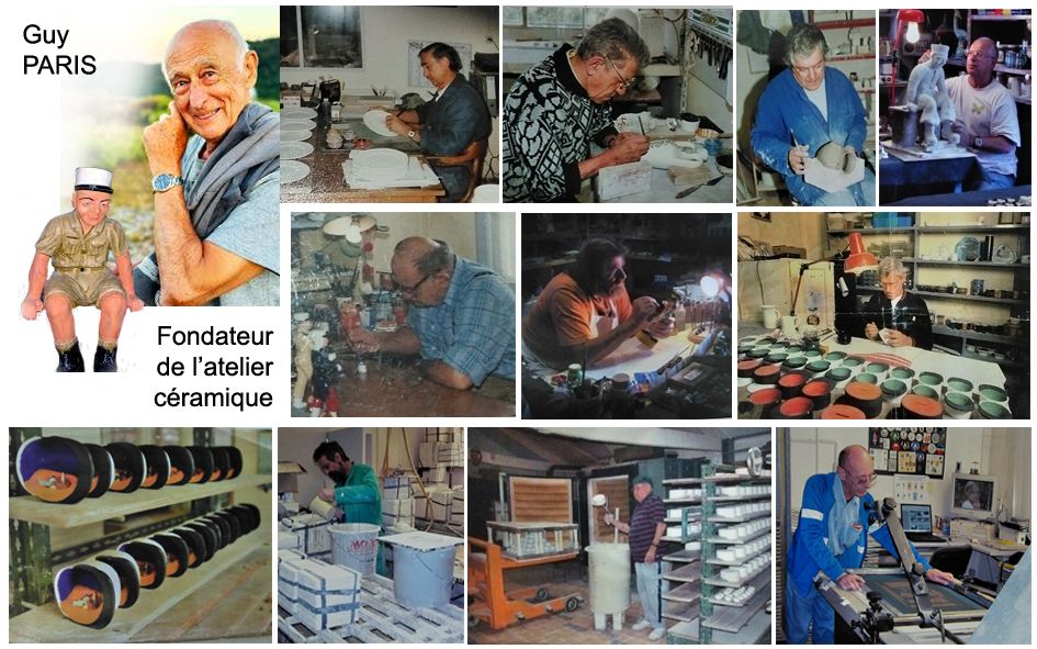 Guy Paris, a graduate of the Marseille School of Fine Arts, was employed in 1957 by the Institution for Invalids of the Foreign Legion (IILE) in Puyloubier after his military service in Morocco and Algeria. He was tasked with creating a ceramics workshop for the benefit of the disabled residents. Intended for a short term, he remained there until 2000. Under his direction, the ceramics workshop was established, and little by little, with patience and generosity, he achieved the remarkable feat of transforming our former legionnaires, scarred by war, into santon makers and ceramic artisans. Mr. Paris became a pillar of the Institution.