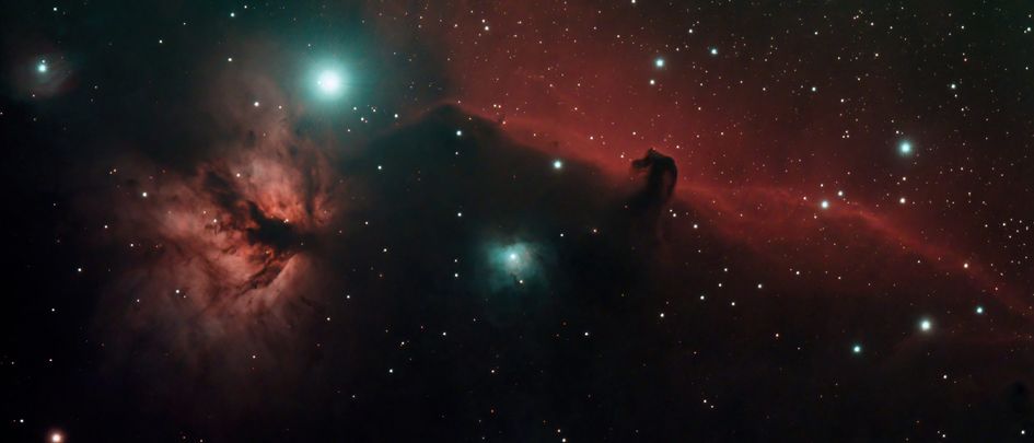 En la parte inferior derecha, otra estrella magnífica: Rigel. Su nombre evoca « la pierna » del gigante Orión. Es su color blanco-azulado lo que sorprende en un telescopio. A simple vista, la comparación de los colores de Betelgeuse y Rigel es ampliamente posible.