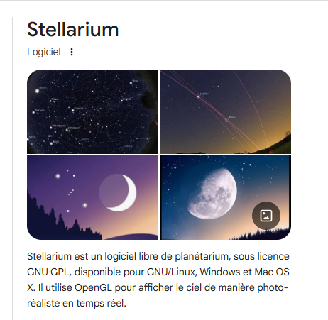 Apuntas a un objeto con el ratón. Aparece su nombre. Una pulsación rápida de la barra espaciadora y aparece en el centro de la pantalla. Con la rueda del ratón, puedes hacer zoom para descubrir la foto más hermosa tomada de ese objeto con grandes telescopios. Fabuloso. El cielo profundo directamente en tu escritorio.