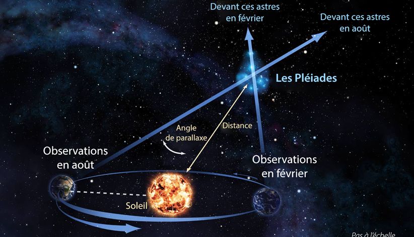 L’arbre, c’est l’étoile proche posée sur le fond des étoiles lointaines. Les astronomes prennent alors des mesures à six mois d’intervalle. Dans ce laps de temps, le promeneur qu’est la Terre a parcouru la moitié de son orbite et se retrouve à l’opposé de sa position initiale par rapport au Soleil.