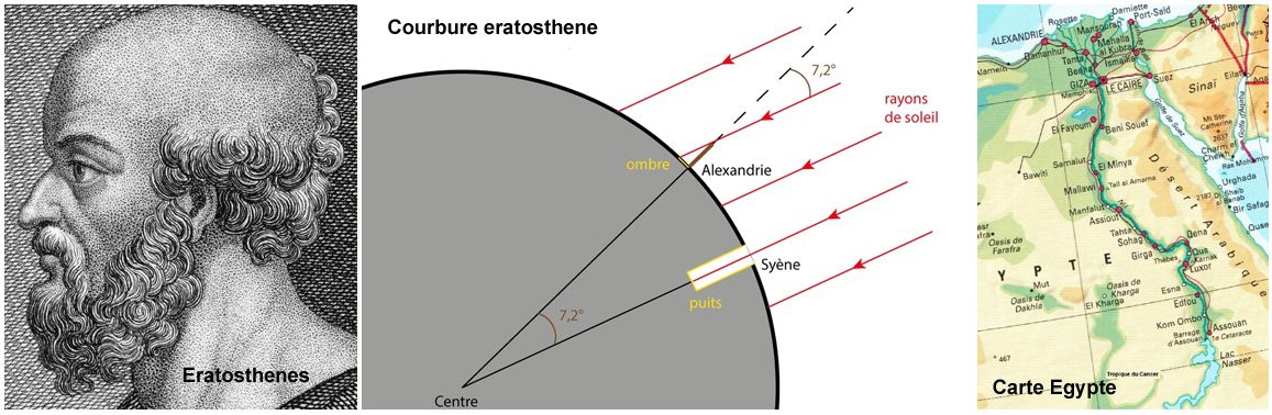 Voici 22 siècles, Ératosthène ( -276 à -194) a non seulement apporté une preuve supplémentaire de la rotondité de la Terre, mais en plus, est devenu célèbre en calculant sa taille avec précision.