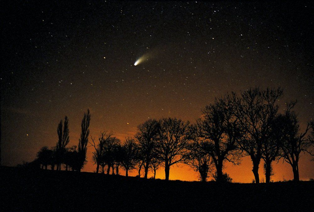 In this around the same time, in October 1996, I had the incredible luck to learn that a comet had just been discovered. It was very far away and hadn't yet unfurled its tail. It was just an ugly blob. Throughout the winter, a group of regulars and I watched for the comet's arrival. In April 1997, it was visible to the naked eye, magnificent in the sky. It was Hale-Bopp, the most wonderful comet of recent decades.